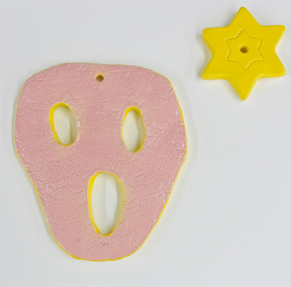 Der Titel des Kunstwerkes kann auf eine Leseanweisung des Gedichtes hinweisen: Du und ich – wir stehen einander bouche bée gegenüber. Der Mund bleibt uns offen stehen. Staunen wird uns gezeigt. Munchs Der Schrei kindlich, spielzeughaft und harmlos. Der Stern ➤ Gendersprache, Stern von Bethlehem, Weihnachtsgepäck, Plätzchenform. Nun kommt noch das Gedicht als Geschenk hinzu.