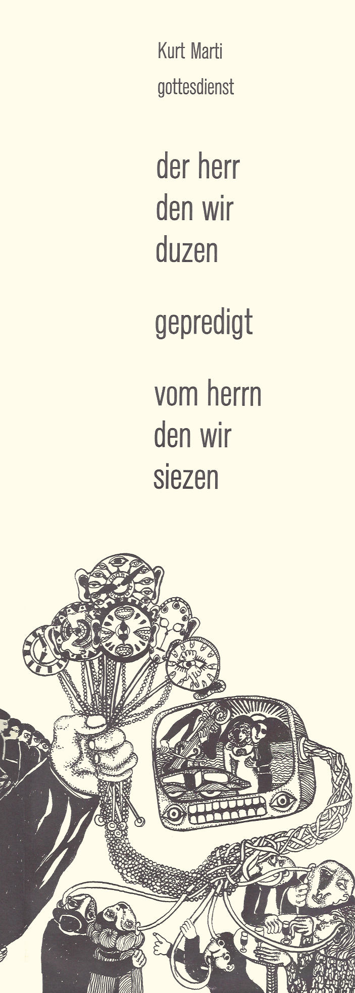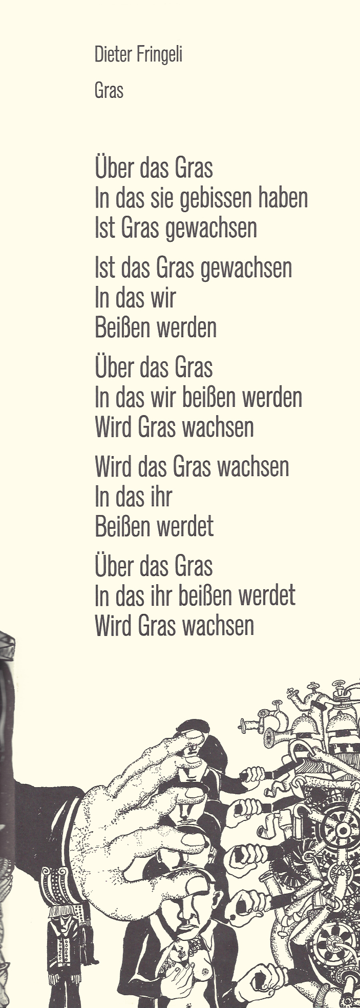 Mappe mit sieben Gedichten auf losen, langen, auch als typographischer Wandschmuck brauchbaren Blättern, die nach Wolf Biermanns Erinnerung vom 14. Mai 2011 als lyrische Hingucker „in jeder linksalternaiven Wohnung hingen“.